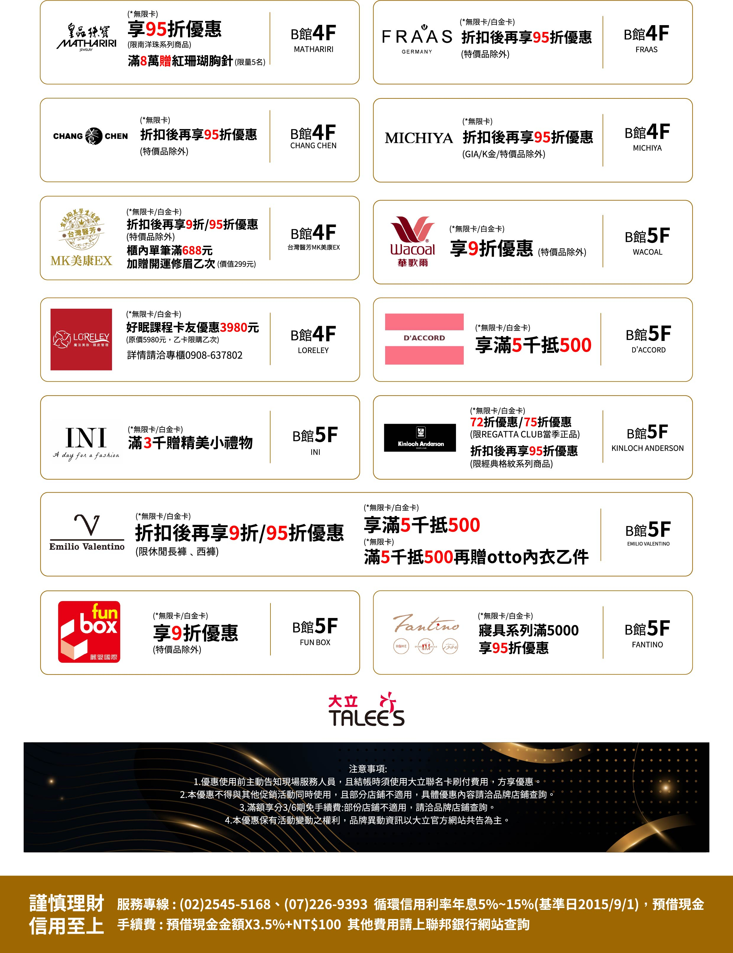 高雄大立 X 聯邦銀行 聯名卡優惠