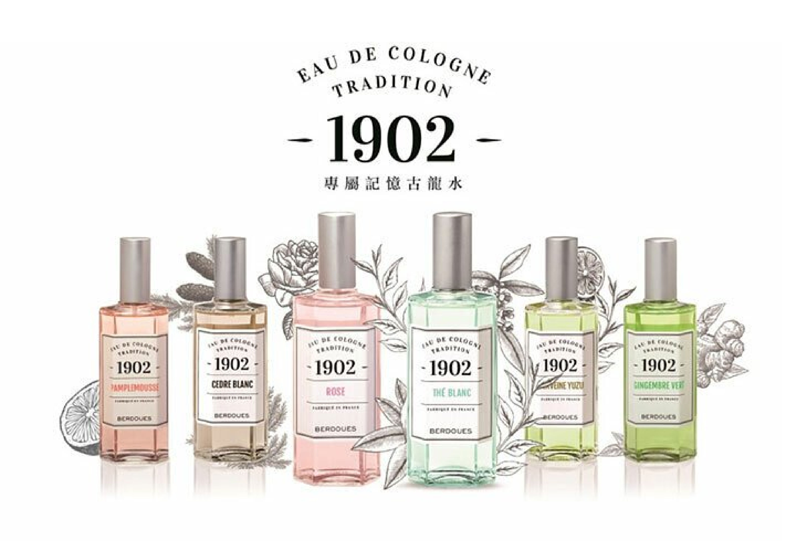 1902 香水(Berdoues 1902)是來自法國的百年沙龍香氛品牌,源自 1902 年的深厚製香傳統。該品牌以現代技術結合自然草本素材,致力於設計出清新、天然、富有獨特情感的香氛,主打的「摩登雅致」系列與「專屬記憶古龍水」系列極具高 CP 值與經典感,深受喜愛優雅清香的人士歡迎。(商品價格 優惠價650元)